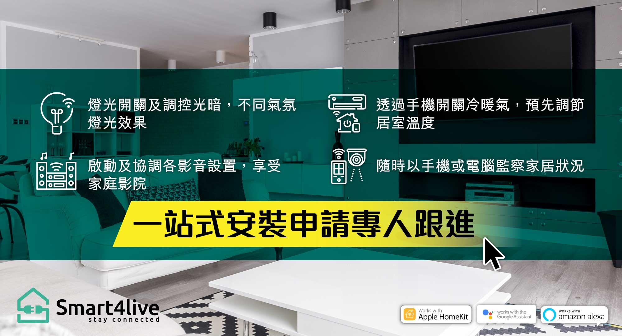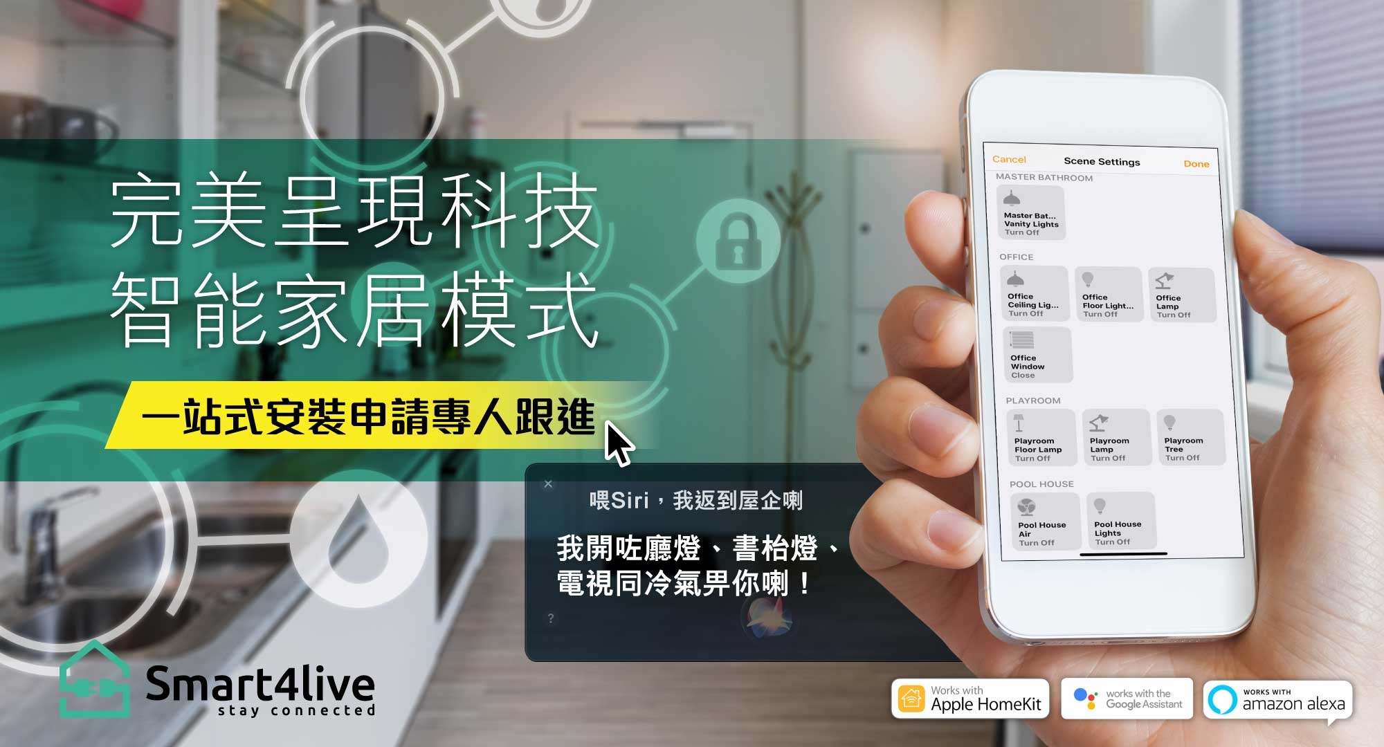 Smart4live家居自動化,將日常繁複的工作全部化簡,從而提升生活品質及更細緻地照顧家人各種習慣所需。運用IoT智能家居技術連接智能家電,為你帶來嶄新便利的智能家居生活體驗,助你打造出集時尚及方便於一身的智慧家庭。